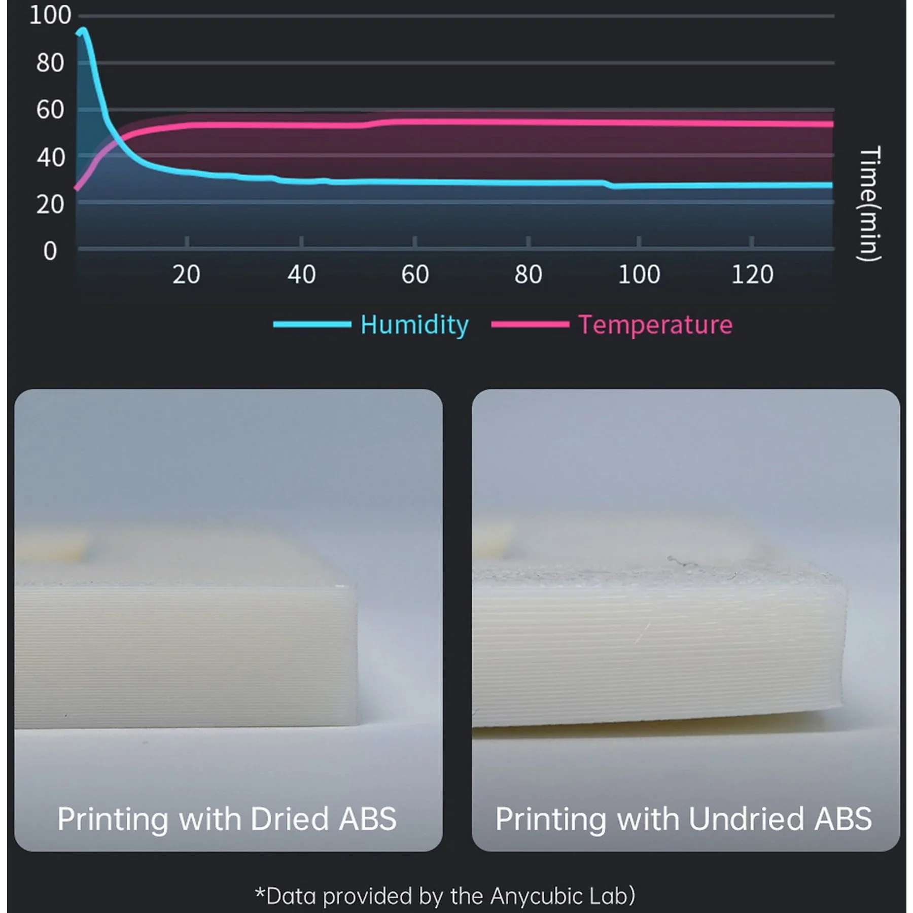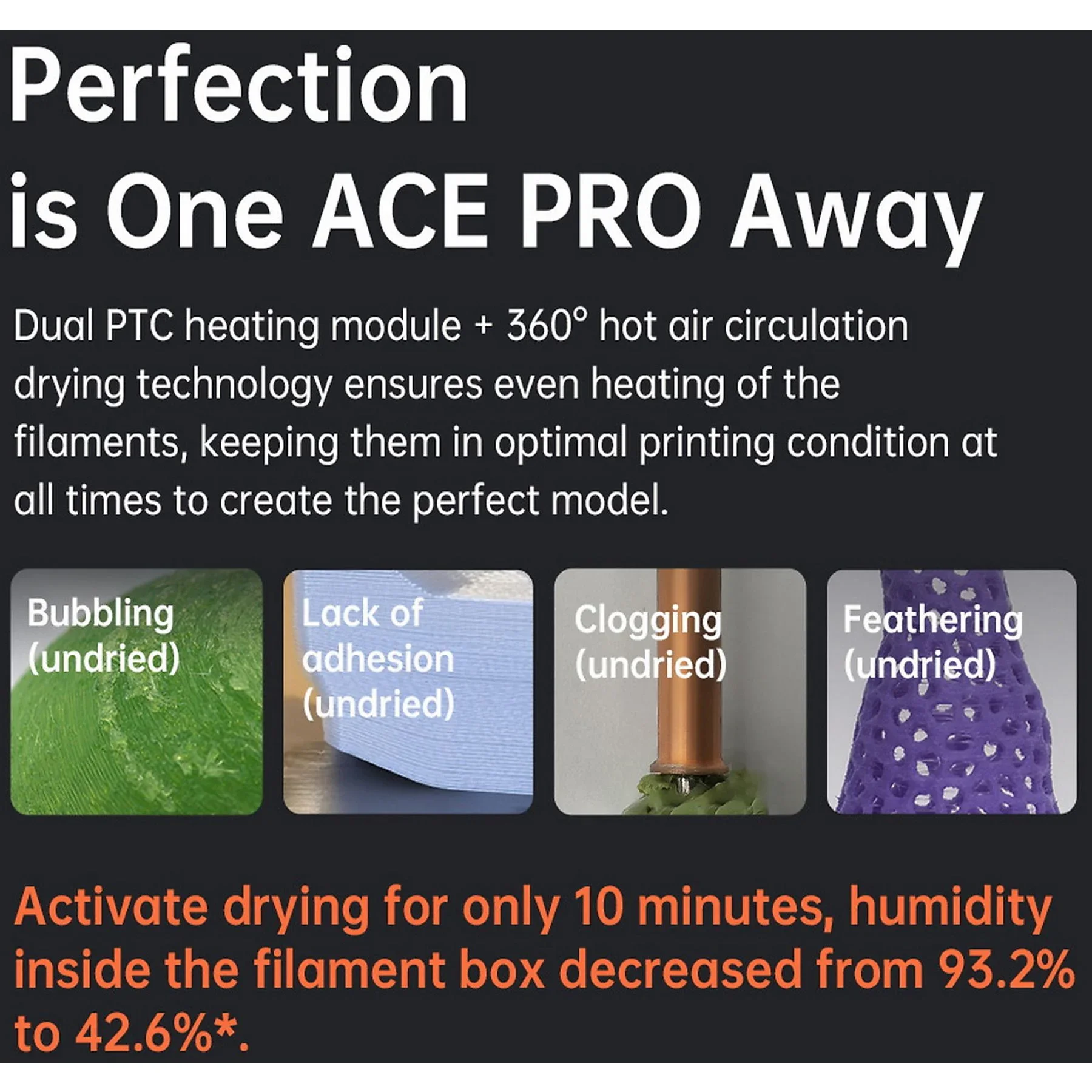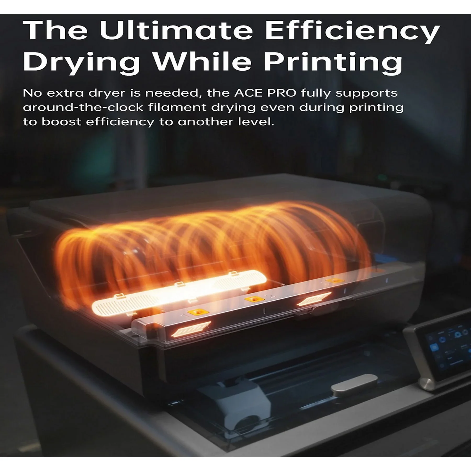 Die vollständig geschlossene CoreXY-Konstruktion sorgt für hohe Stabilität und konstante Druckbedingungen. Gleichzeitig können Filamente während des Druckens aktiv getrocknet werden, was die Materialqualität verbessert und Druckfehler minimiert – besonders bei langen Jobs.