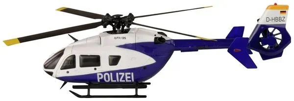 Der Amewi AFX-135 Polizei RC Hubschrauber ist ein realitätsnaher Scale-Nachbau eines bekannten Polizeihubschraubers. Die detailgetreue Kabine zeigt selbst Nieten und andere originale Details, während das Modell durch die LED-Beleuchtung vorne und hinten für eine beeindruckende Optik sorgt.