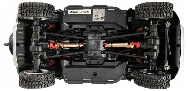 Dank des kräftigen Brushed 4WD-Antriebs mit mehrfach untersetztem Getriebe, gesperrten Differentialen und Metall-Teleskop-Antriebswellen meistert das Modell steile Hindernisse und unebenes Gelände problemlos. Der Crawler verfügt über eine komplette LED-Beleuchtungsanlage inklusive Fahrlicht, Rücklichtern, Blinkern und Rückfahrlicht.