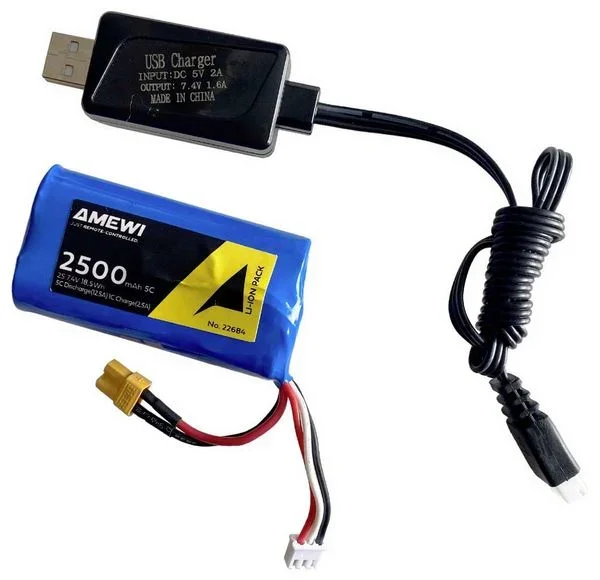 - 2500mAh Li-Ion Akku mit XT30-Anschluss, Fahrzeit bis ca. 25 Minuten