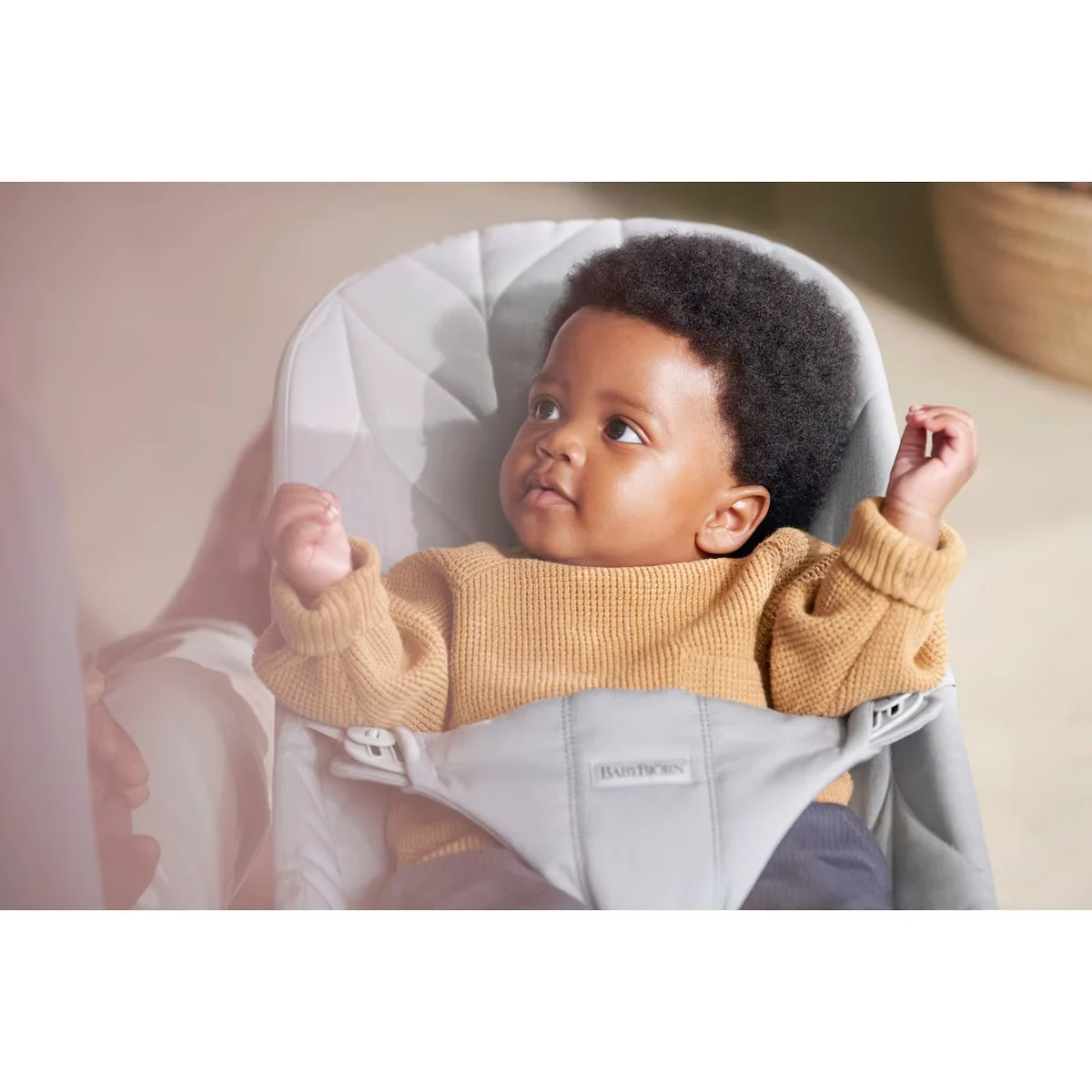 BabyBjörn Babywippe Bliss gewebt „Hellgrau / Blütenblatt“