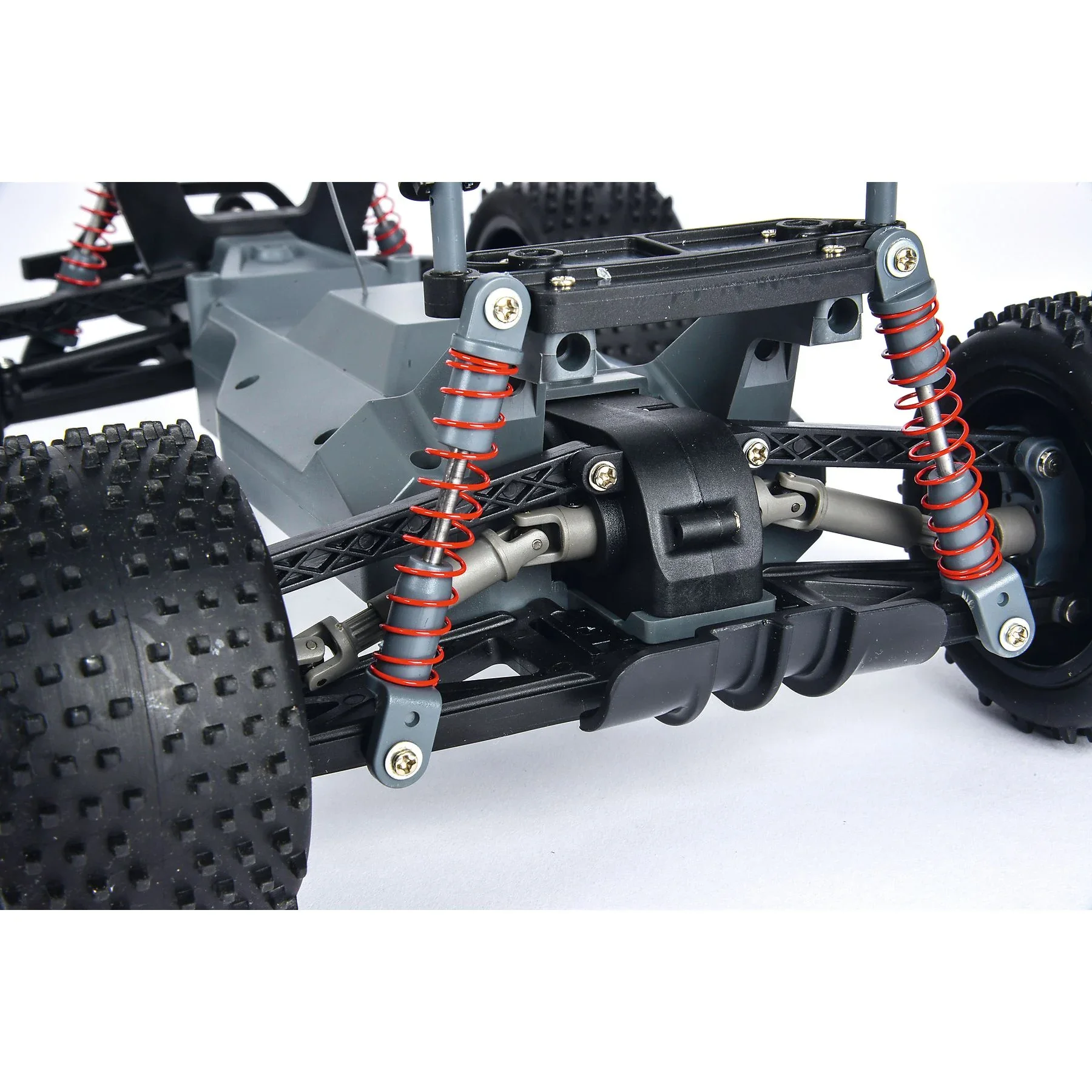 Ein neu entwickeltes, voll gefedertes Chassis, griffige Off-Road-Pinreifen und spritzwassergeschützte Elektronik sorgen für zuverlässige Performance auf unebenem und feuchtem Untergrund. Die dekorierte Karosserie und LED-Scheinwerfer vorne runden den sportlichen Look ab.