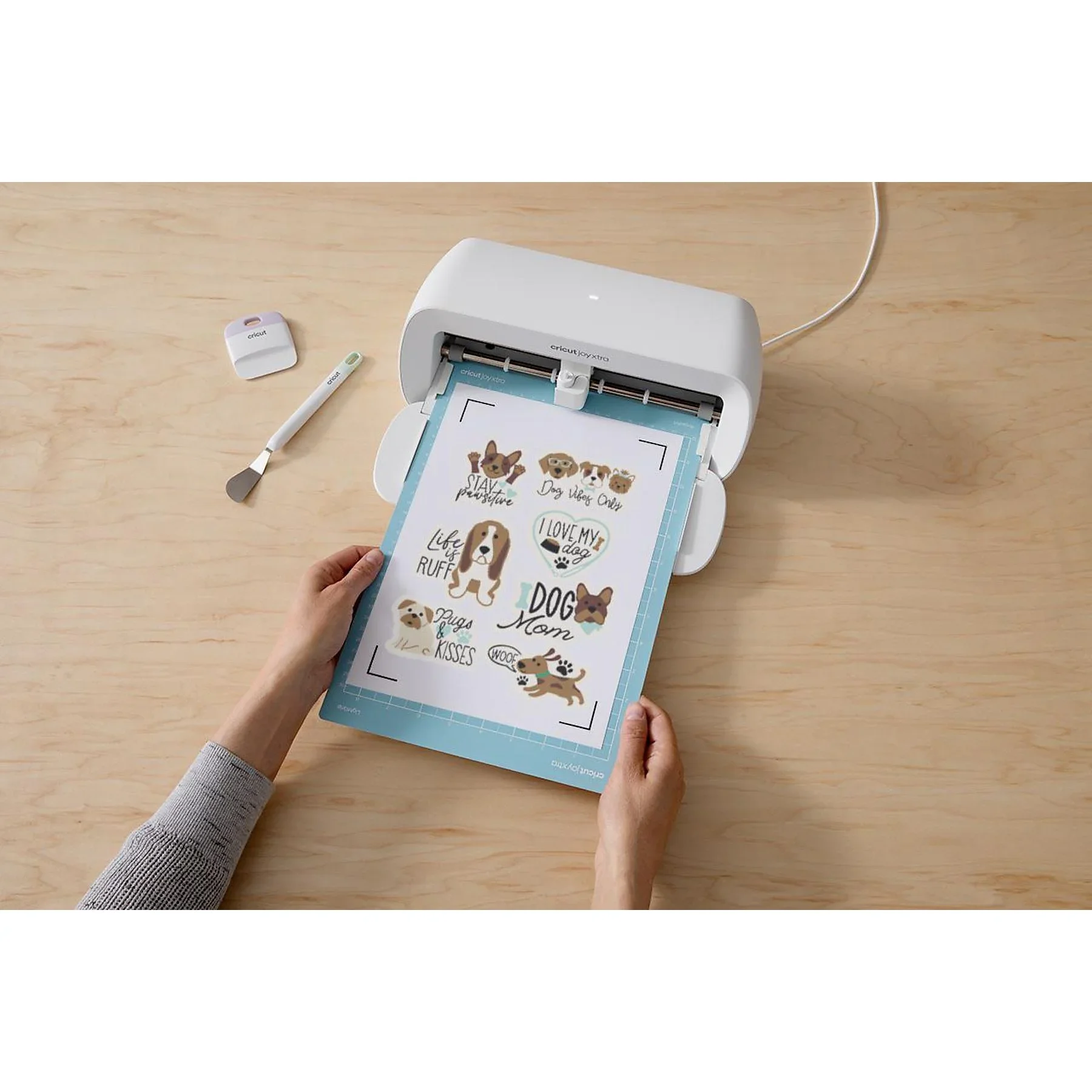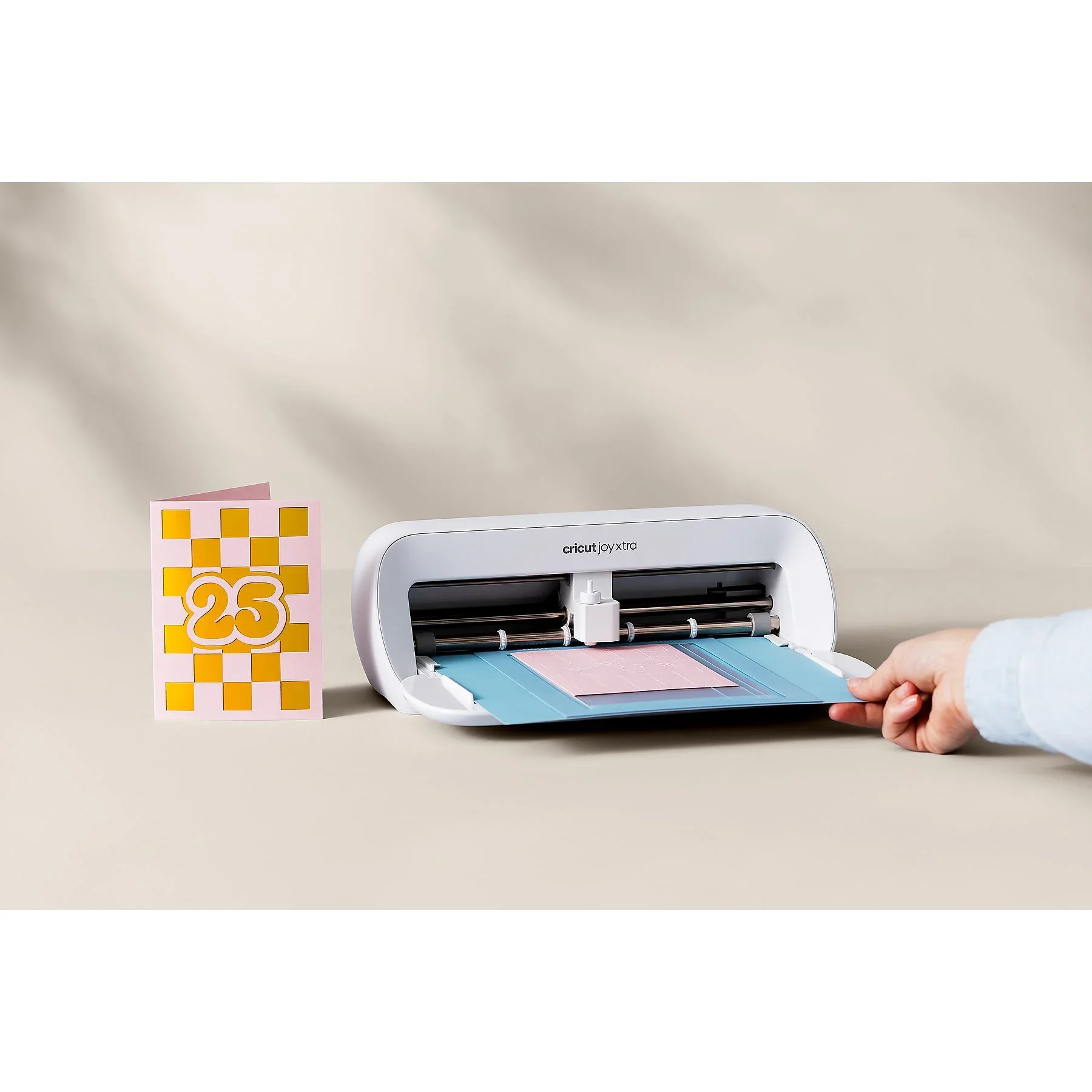| Im Paket | Cricut Joy Xtra™ Schneideplotter, Premium-Feinschnittklinge mit Gehäuse, Feinstift (0,4 mm), Mini-Entgitterhaken, Willkommenskarte, USB-Kabel, Netzteil, Materialien für Testschnitte, LightGrip-Schneidematte (21,6 × 30,5 cm), bedruckbare Materialien, Smart Vinyl™, Transferklebeband sowie digitale Projekte in der Begleit-App |