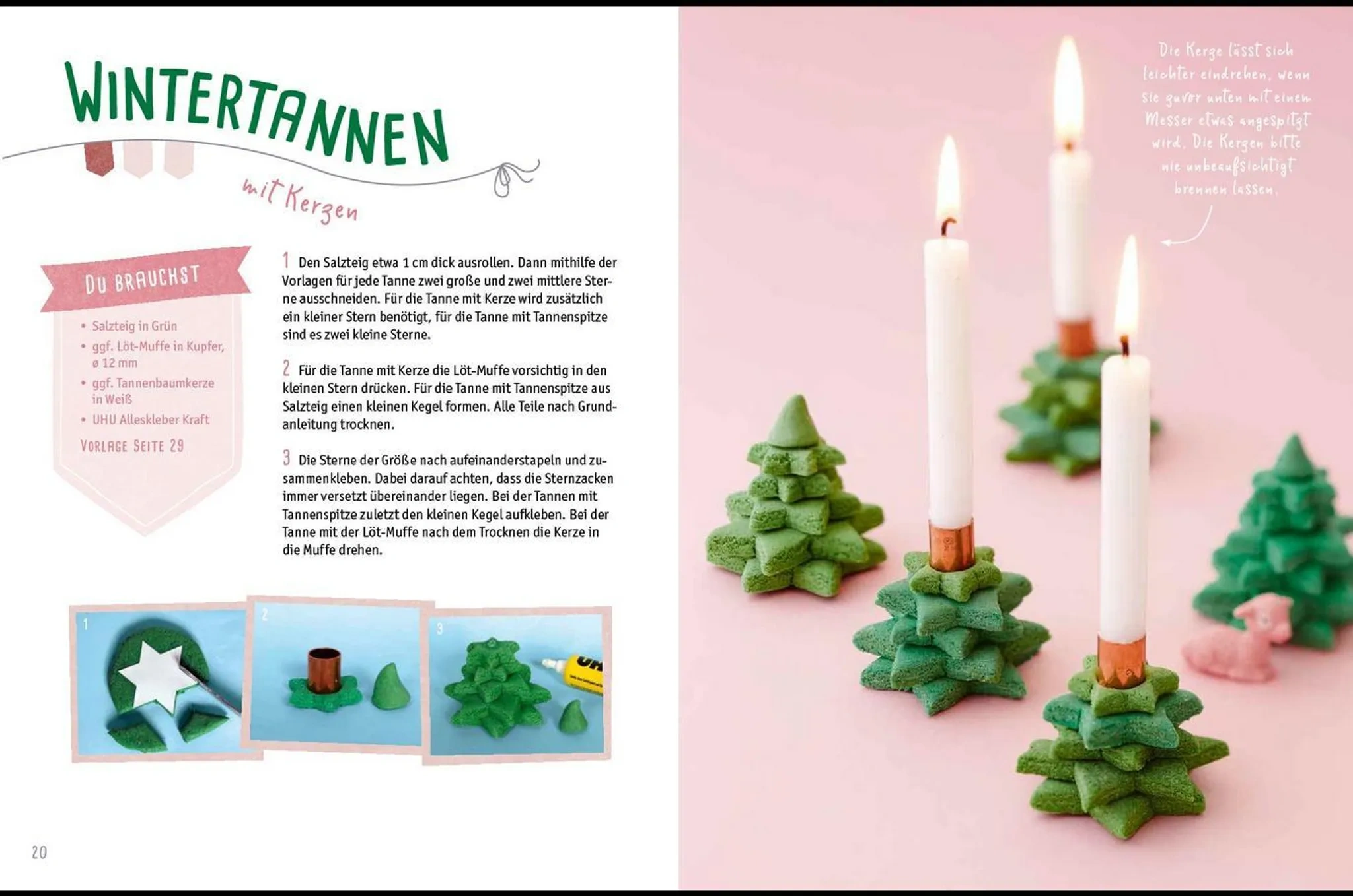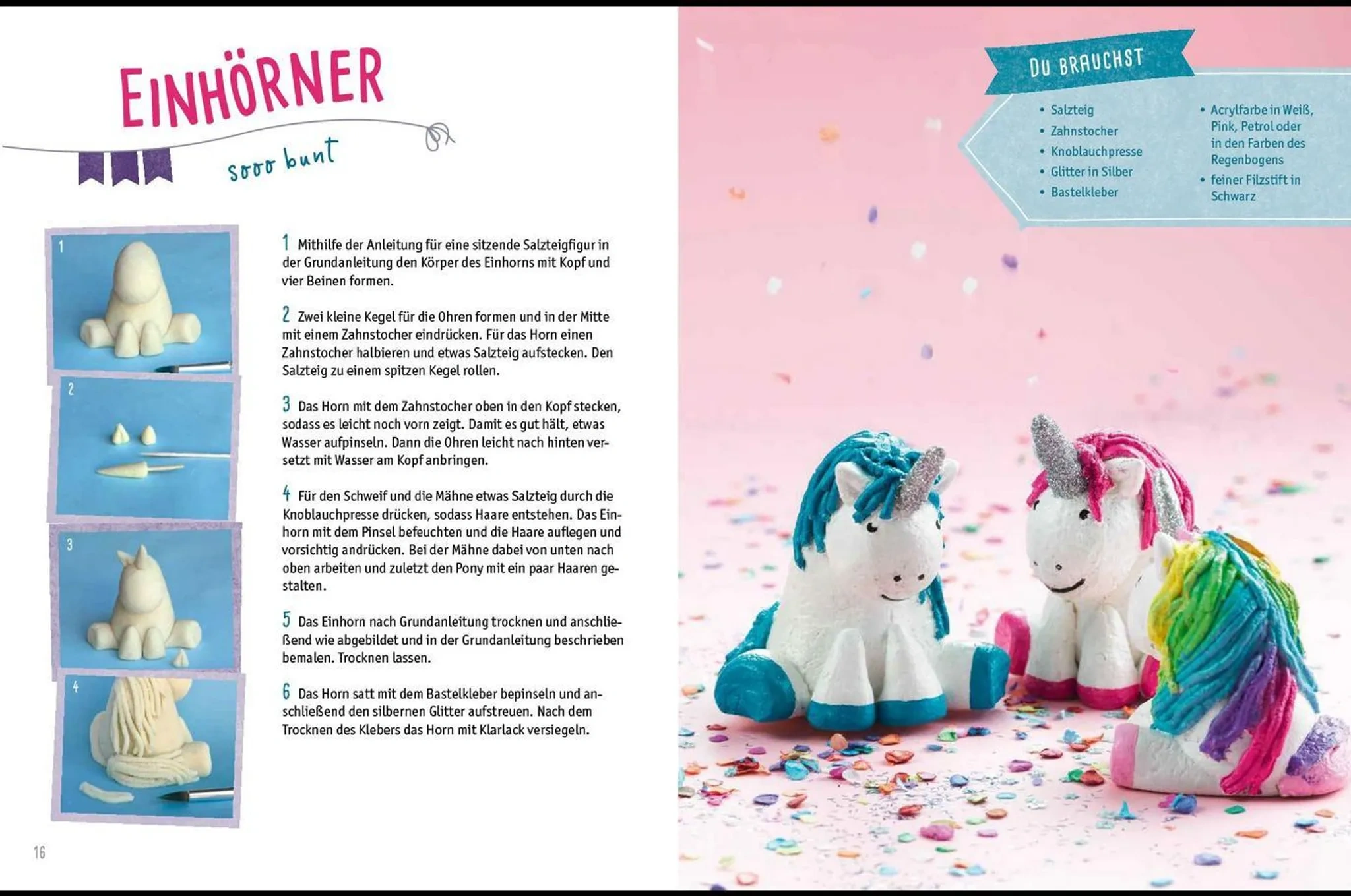 | Im Paket | Bastelbuch mit Salzteigideen, Schritt-für-Schritt Anleitungen, Vorlagen |