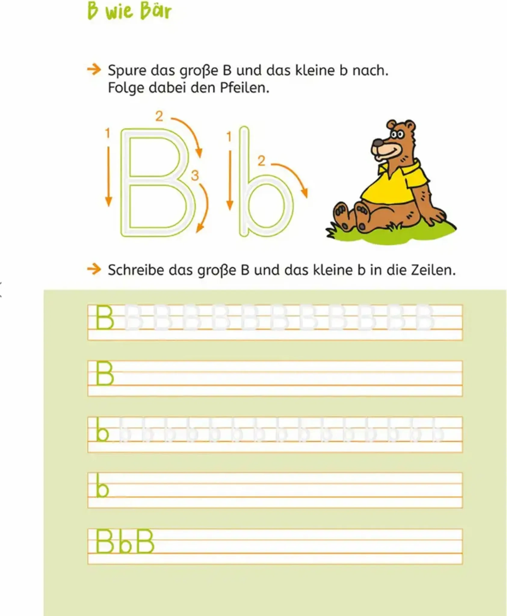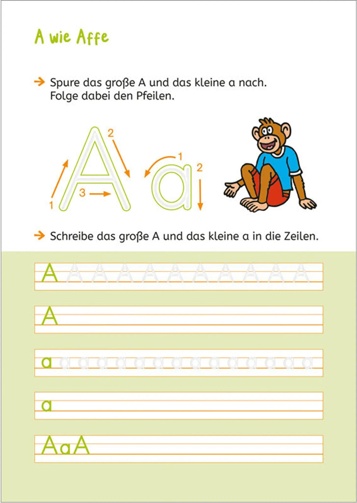 Zu jedem Buchstaben gibt es ein farbenfrohes Anlautbild, das beim Erlernen von Lauten und Formen hilft. So wird das Alphabet nicht nur geübt, sondern auch verstanden. Ideal geeignet für Kinder ab 6 Jahren als Ergänzung für Vorschule und Grundschule.