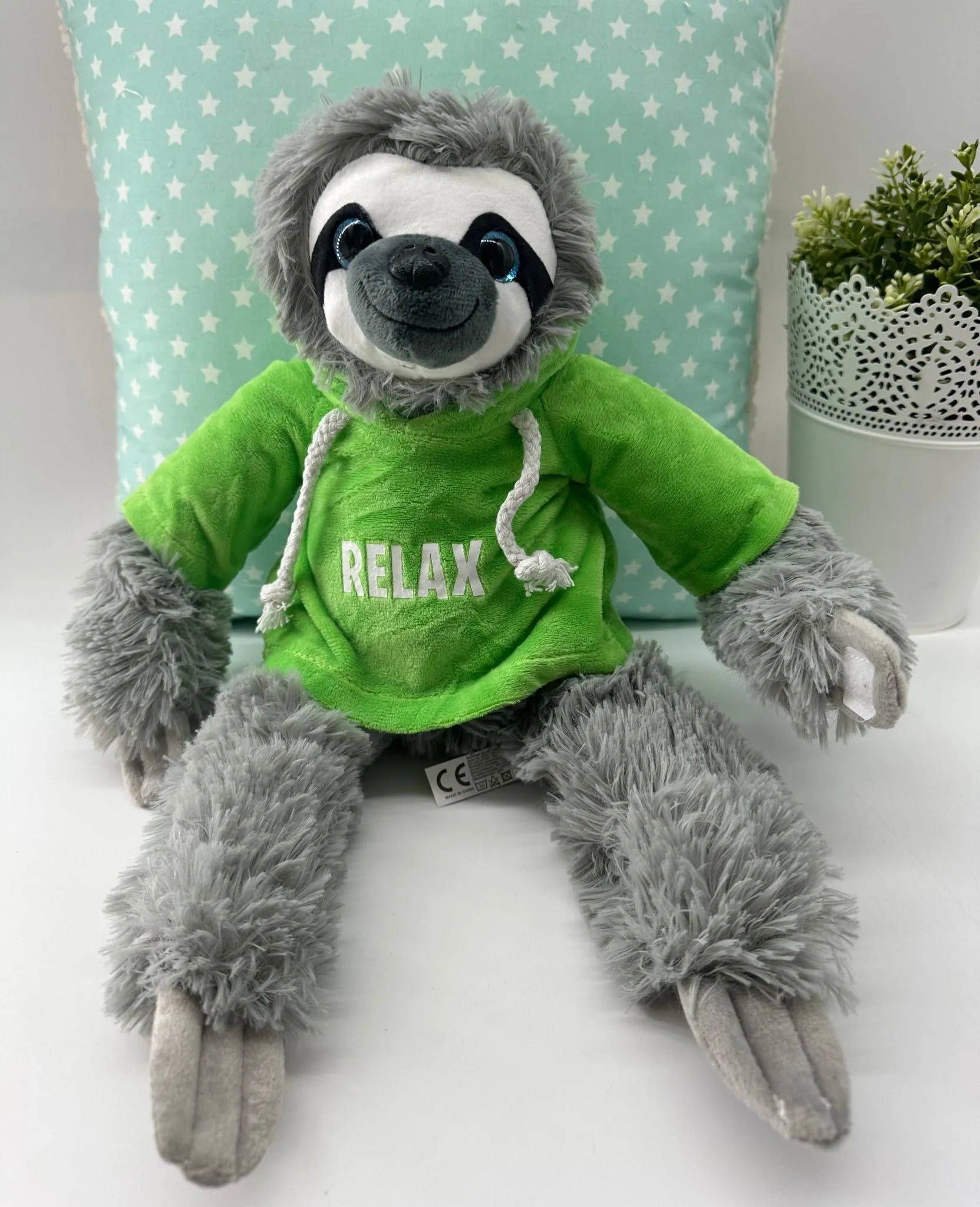Highlights: XXL-Faultier, extra kuschelig, farbenfroher Pullover ("Relax"), vielseitig einsetzbar zum Kuscheln, Spielen oder als Dekoration, geprüft nach Sicherheitsstandards.